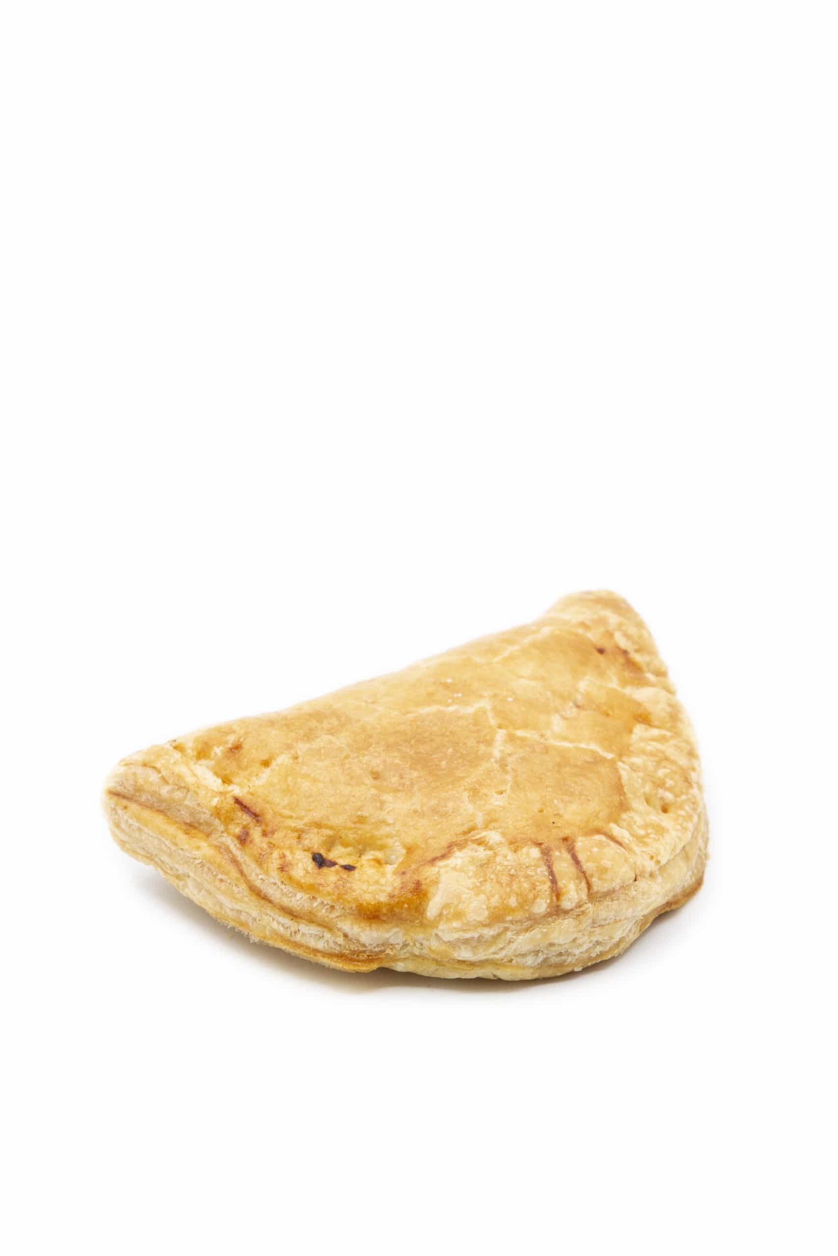 Empanadilla elaborada en nuestro obrador de forma artesanal con masa fina de hojaldre, rellena de atún y suave pisto.